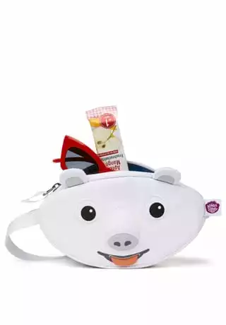 Affenzahn Bauchtasche für Kinder. Die Tasche schließt mit einem Reißverschluss und hat eine Zunge zum Herausziehen mit Gummizug. Der ideale Begleiter für Kinder.