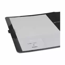 Beschriftungsetikett, Stiftschlaufe und Einstecktasche im Vorderdeckel