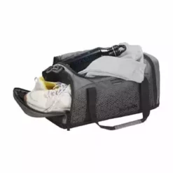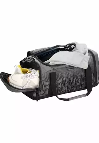 praktische Sporttasche für Sport- oder Schwimmsachen. Mit separaten Nassfach sowie abnehmbarem und gepolstertem Tragegurt.