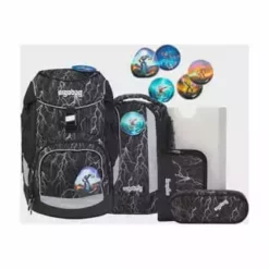 Schulrucksack, Sportrucksack, Schlampermäppchen, Heftebox, befülltem Federmäppchen (22-tlg.) und Kletties (5-tlg.)