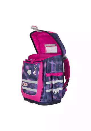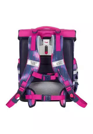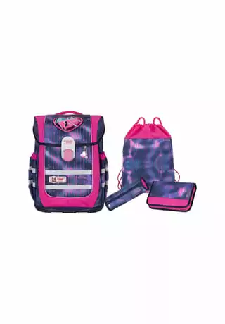 4-teiliges Schulranzen-Set der brandneuen Ergo Complete Serie von McNeill bestehend aus Schulranzen, Sportschuhbeutel, Federmäppchen gefüllt und Schlamperrolle. Der Schulranzen überzeugt durch hohe Verarbeitung und Funktionalität und verfügt über Motivmagneten, die an der Deckelkappe angebracht werden können und einen Grundmotiv komplettieren. Dadurch wird der Schulranzen ganz individuell gestaltet. Mit ergonomischem, höhenverstellbarem Tragesystem, vielzähligen Fächern und Taschen und viel Platz für Bücher, Hefte, Trinkflasche, Federmäppchen oder sonstige Mitbringsel für die Schule lässt der Schulranzen keine Wünsche offen. Die Reflektoren sorgen für Sichtbarkeit und Sicherheit auf dem Schulweg. Schulranzen Außenmaß: 29 cm x 22 cm x 38,5 cm / Gewicht: ca. 1150 g / Volumen: ca. 20 l