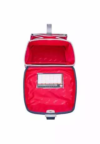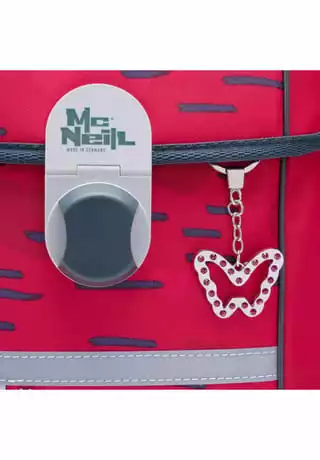 5-teiliges Schulranzen-Set der brandneuen Ergo Complete Serie von McNeill bestehend aus Schulranzen, Sportschuhbeutel, Federmäppchen gefüllt, Schlamperrolle und Motivmagnet. Der Schulranzen überzeugt durch hohe Verarbeitung und Funktionalität und verfügt über Motivmagneten, die an der Deckelkappe angebracht werden können und einen Grundmotiv komplettieren. Dadurch wird der Schulranzen ganz individuell gestaltet. Mit ergonomischem, höhenverstellbarem Tragesystem, vielzähligen Fächern und Taschen und viel Platz für Bücher, Hefte, Trinkflasche, Federmäppchen oder sonstige Mitbringsel für die Schule lässt der Schulranzen keine Wünsche offen. Die Reflektoren sorgen für Sichtbarkeit und Sicherheit auf dem Schulweg. Schulranzen Außenmaß: 29 cm x 22 cm x 38,5 cm / Gewicht: ca. 1150 g / Volumen: ca. 20 l