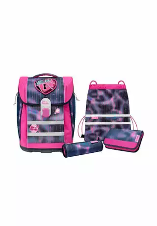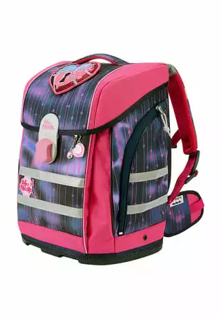 6-teiliges Schulranzen-Set von McNeill, bestehend aus Schulranzen, Sportschuhbeutel, Federmäppchen gefüllt, Schlamperrolle, Motivmagnet und an- und ausschaltbarem Leuchtanhänger. Top-Tragekomfort durch die atmungsaktive Rückenpolsterung, höhenverstellbare Gurte sowie Becken- und Brustgurt. Der Ranzen hat einen Schnappverschluss, der magnetisch angezogen wird und sehr leichtgängig wie von selbst schließt. Die Bodenplatte ist aus Plastik und bietet dadurch einen wasserfesten und sicheren Stand. Geräumige offene Seitentaschen können für die Trinkflasche oder sonstige Mitbringsel für die Schule verwendet werden. An- und ausschaltbarer Leuchtanhänger bietet eine sichere und optimale Lösung, wenn es um die Sichtbarkeit ihres Kindes geht. Schulranzen Außenmaß: 30 cm x 22 cm x 38 cm / Leergewicht: ca. 1.000 g / Volumen: ca. 20 l