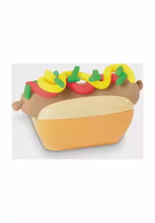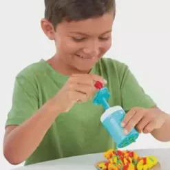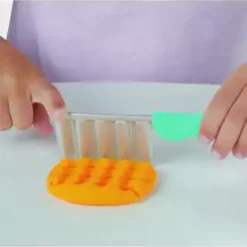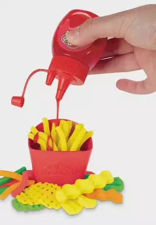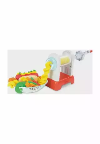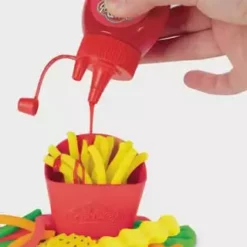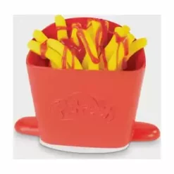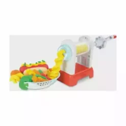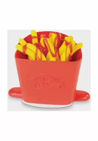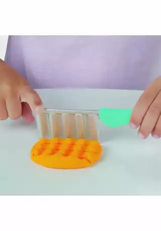 Ob gedreht, gezwirbelt, geschlängelt oder kunterbunt – in der Welt der Play-Doh Knetküche sind die verrücktesten Pommes- und Chips-Arten möglich! Die Pommesmaschine verfügt über 2 verschiedene Aufsätze, um durch ein einfaches Drehen der Kurbel lustige Play-Doh Pommes in Spiralen- oder Wellenformen zu kreieren. Dank der durchsichtigen Teile können die Kinder sogar sehen, wie sich die Farben durch die Maschine drehen. In der Pommestüte entstehen klassische Pommes in Stäbchenform, mit dem Messer werden geriffelte Pommes kreiert und mit dem Förmchen Chips mit Waffelmuster gestempelt. Danach ist es Zeit, die Pommeskreationen mit Toppings zu verzieren! Mit dem Fläschchen roter Play-Doh Drizzle Soße kann das Knetgericht spielerisch mit Ketchup dekoriert und dank der Mühle mit Salz und Gewürzen noch verfeinert werden. Wie wäre es mit einer Großbestellung samt Hotdog? Das Spielset eignet sich für Kinder ab 3 Jahren und kommt mit 5 Play-Doh Farben für jede Menge Spaß.