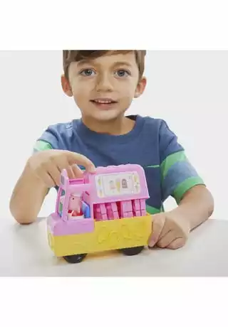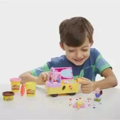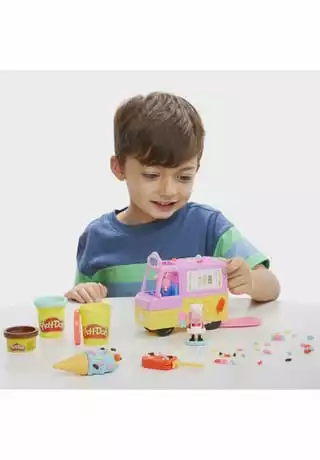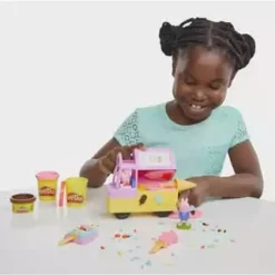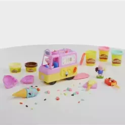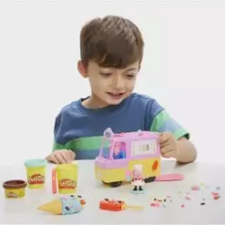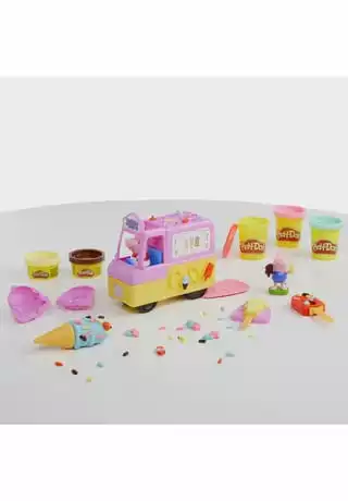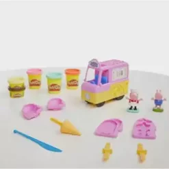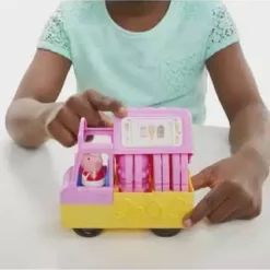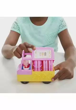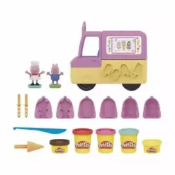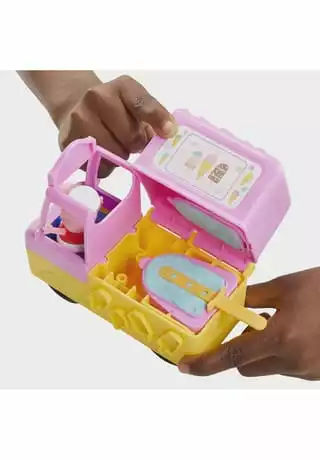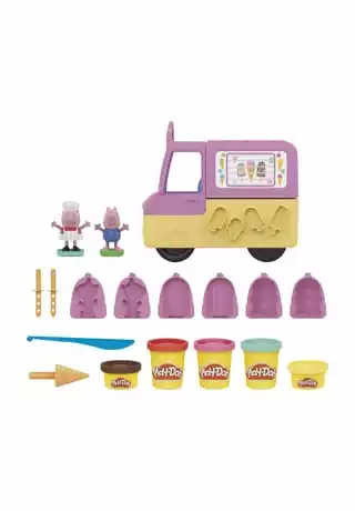 Peppa und ihr Bruder Schorsch sind bereit für Spaß mit Play-Doh. Der Eiswagen eignet sich für Kinder ab 3 Jahren und kommt mit niedlichen Peppa und Schorsch Figuren, um die liebsten Szenen aus der Serie nachzuspielen. Die Figuren können in der Fahrerkabine des Eiswagens Platz nehmen und vergnügt dabei zusehen, wie die Hinterräder lustige Sirupformen stempeln oder die eingebauten Formen kreative Toppings entstehen lassen. Der Wagen lässt sich aufklappen und 3 große Formen stehen bereit, um Eiswaffeln, Eis am Stiel und niedliches Teddybär-Eis zu formen. Das Set enthält 5 Dosen Play-Doh in den Farben Rot, Türkis, Pink, Gelb und Braun und bietet jede Menge Spielspaß rund um Peppa Wutz. Dieses kreative Spielzeug eignet sich prima für Partys und Spielverabredungen und ist ein fantastisches Geburtstags- oder Weihnachtsgeschenk für Fans von Peppa Wutz.