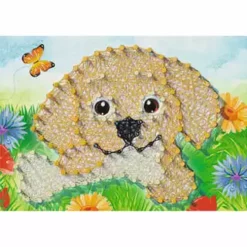 Mit dem Ravensburger String it-Set “Dogs” erlernen bereits Kinder ab 7 Jahren die beliebte Technik String Art. Hier werden keine Nägel eingeschlagen, sondern Kunststoffpins eingedrückt. Sind alle Pins gesteckt, werden auf der Vorderseite der Tafel die bunten Fäden ganz nach Belieben kreuz und quer gespannt, bis das Fadengeflecht das Motiv erscheinen lässt. String Art ist wieder voll im Trend. Mit dem Ravensburger String it-Set erlernen bereits Grundschulkinder die beliebte Technik. Das geht ganz einfach: Die Löcher der Motivtafeln sind auf der Rückseite farbig umrandet. So ist leicht zu erkennen, welcher Pin an welche Position kommen soll. Sind alle Pins gesteckt, werden auf der Vorderseite der Tafel die farblich passenden Fäden ganz nach Belieben kreuz und quer gespannt, bis das Fadengeflecht das Motiv erscheinen lässt. Wann das Bild fertig ist, entscheidet jeder selbst. Das Netz kann dabei ganz dicht sein oder auch mit vielen Zwischenräumen. Im Set enthalten sind Kunststoffpins in unterschiedlichen Farben, zwei Motivtafeln mit Vorlage sowie Garn auf Haspeln in verschiedenen Farben.