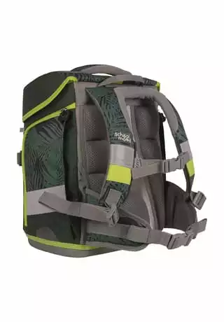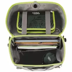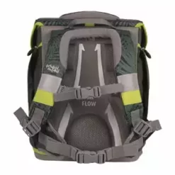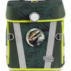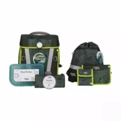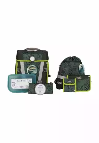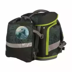 Der Ranzen ist dank selbstschließendem „FidLock“-Magnetverschluss kinderleicht zu Öffnen und zu Schließen. Darüber hinaus gibt es ein geräumiges Hauptfach mit integriertem Bücherfach, das schwere Bücher nah am Rücken hält und für eine möglichst entlastende Gewichtsverteilung sorgt. Zwei große, isolierte Reißverschluss-Außentaschen halten Trinkflasche und Brotdose stets griffbereit (mit integriertem Ablaufnetz, sollte die Trinkflasche einmal undicht sein). Eine kleine Reißverschlusstasche in der rechten Beckenflosse bietet Platz für Haustür- oder Fahrradschlüssel. Zudem existieren 3 Halterungen, an denen der Turnbeutel fixiert werden kann. Für die individuelle Gestaltungsmöglichkeiten sorgen 2 starke, wechselbare Dino-Patchies und 1 Blanko-Patchy. Besondere Zugabe: das Etui mit holzfreien Bunt- und Bleistiften aus recyceltem Material.