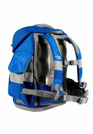 7-teiliges Schulranzen-Set von School-Mood, bestehend aus Schulranzen, Sportbeutel/Turnbeutel, Schüleretui (21-tlg.), Schlamperrolle, Brustbeutel, Brotdose und 3 Patchies. Klassischer Schulranzen der Timeless Air+ Serie ist robust, wasserabwesend, leicht zu reinigen und lässt keine Wunsche offen. Selbstschließender Magnetverschluss ermöglicht ein kinderleichtes Öffnen und Schließen des Deckels. Das mitwachsende, ergonomisch geformte Tragesystem mit Brust- und Beckengurt bietet hervorragenden Tragekomfort und optimalen Sitz. Im Inneren ist der Schulranzen bestens ausgestattet und bietet Ordnung, Übersicht und viel Stauraum für Hefte, Bücher, Federmäppchen, Brotdose usw. Reflektierende Elemente sorgen für Sicherheit bei Dunkelheit. Mit wechselbaren Patchies für Motivaustausch lässt sich der Schulranzen immer neu und individuell gestalten. Dank integrierter Halterung kann der Sportbeutel am Schulranzen befestigt werden. Etui ist komplett bestückt (21tlg.) und verfügt über einen Stundenplan. Schulranzen Außenmaß: 30 cm x 24 cm x 42 cm / Gewicht: ca. 980 g / Volumen: ca. 23 l