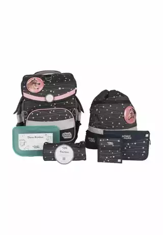 Schulranzen, Turnbeutel, Etui, Schlamperrolle, Brustbeutel, Brotdose, Pattchies