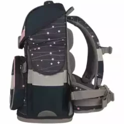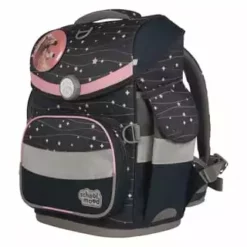 7-teiliges Schulranzen-Set von School-Mood, bestehend aus Schulranzen, Sportbeutel/Turnbeutel, Schüleretui (21-tlg.), Schlamperrolle, Brustbeutel, Brotdose und 3 Patchies. Klassischer Schulranzen der Timeless Air+ Serie ist robust, wasserabwesend, leicht zu reinigen und lässt keine Wunsche offen. Selbstschließender Magnetverschluss ermöglicht ein kinderleichtes Öffnen und Schließen des Deckels. Das mitwachsende, ergonomisch geformte Tragesystem mit Brust- und Beckengurt bietet hervorragenden Tragekomfort und optimalen Sitz. Im Inneren ist der Schulranzen bestens ausgestattet und bietet Ordnung, Übersicht und viel Stauraum für Hefte, Bücher, Federmäppchen, Brotdose usw. Reflektierende Elemente sorgen für Sicherheit bei Dunkelheit. Mit wechselbaren Patchies für Motivaustausch lässt sich der Schulranzen immer neu und individuell gestalten. Dank integrierter Halterung kann der Sportbeutel am Schulranzen befestigt werden. Etui ist komplett bestückt (21tlg.) und verfügt über einen Stundenplan. Schulranzen Außenmaß: 30 cm x 24 cm x 42 cm / Gewicht: ca. 980 g / Volumen: ca. 23 l