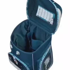 dank einer festen Bodenplatte steht der Schulranzen aufrecht auf dem Boden