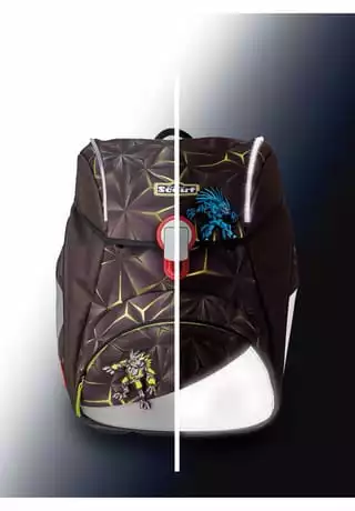 Durch den flexiblen Aufbau ist der Ranzen sehr geräumig. Rückenteil und Schulterträger sind gepolstert. Brustgurt und Hüftgurt für optimale Gewichtsverteilung. Extragroße Reflektionsflächen.