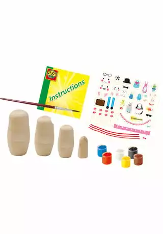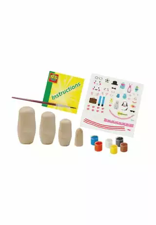Kennst du Matroschkas, die Püppchen, die man ineinander stecken kann? Mit diesem Set von SES Creative kannst du Matroschkas selbst herstellen. Bemale sie in deinen Lieblingsfarben und bearbeite sie mit hübschen Stickern. Es macht Spaß, die eigene Familie abzubilden!
