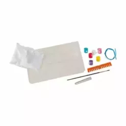 Gips, 1 Gießform, 6 Malfarben, 1 Pinsel, 1 Röhrchen, silberfarbener Glitzer, 1 blaues Satinband, Glättwerkzeug