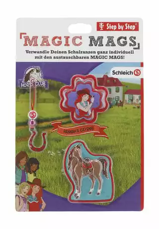 Liebevoll gestaltete und hochwertige Figuren aus allen Themenwelten, die an Step by Step Schulranzen und Rucksäcken angebracht werden können. Ihr Kind kann die Motive nach Belieben austauschen, kombinieren oder komplett abnehmen. Ein Set enthält zwei MAGIC MAGS und zusätzlich einen Anhänger, der sich an einer Aufhängeöse festmachen lässt.