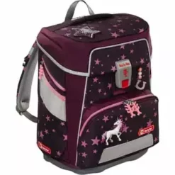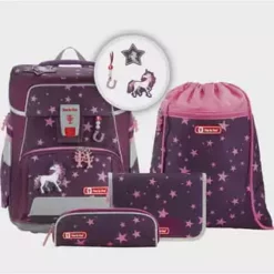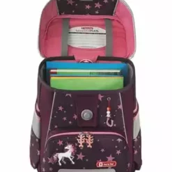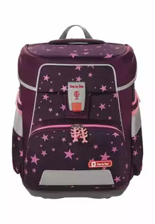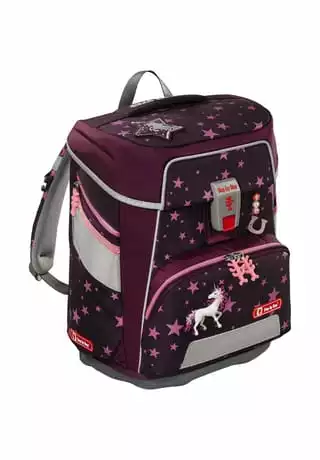 1 Schulranzen, 1 Federmäppchen bestückt (7 Jumbo Farb-Markenstifte, 12 Farb-Markenstifte, 1 Bleistift, 1 Lineal, 1 Geodreieck, 1 Doppelspitzer, 1 Radiergummi), 1 Schlampermäppchen, 1 Sportbeutel, 1 Set MAGIC MAGS (2 Applikationen und 1 Anhänger)