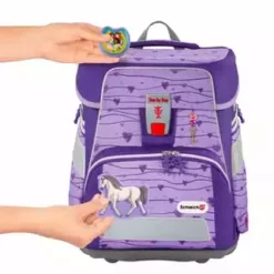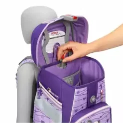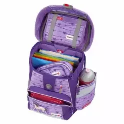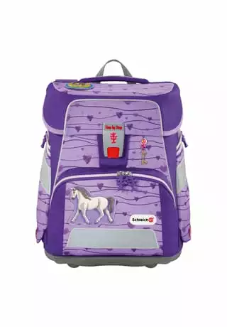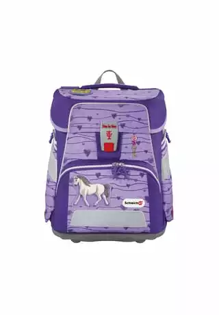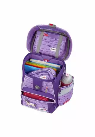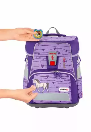 Die Limited Edition “Space Schleich” ist Teil einer Kooperation mit dem Spielzeughersteller Schleich. Der Space Schleich mir zauberhaften Schleich-Motiven begeistert durch besonders leichtes Material, großes Fassungsvermögen und das höhenverstellbare Tragesystem, das sich Ihrem wachsenden Kind anpassen kann. Die ergonomische Rückenpartie, das Rückenpolster, sowie Hüftflosse, Brustgurt und Lageverstellriemen sorgen für ein optimales Trageerlebnis. Für die individuelle Gestaltung können Magic Mags, ganz nach dem Geschmack Ihres Kindes, angebracht werden. Im geräumigen Hauptfach, das mit praktischem Fidlock-Magnetverschluss geschlossen wird, gibt es jede Menge Platz für alles, was im Unterricht gebraucht wird, zusätzlich können die zwei Seitentaschen nach außen wachsen und so im Inneren für genügend Stauraum sorgen. Das Mäppchen kann platzsparend im Schulranzen-Deckel verstaut werden. Set bestehend aus: Schulranzen, Federmäppchen (komplett bestückt mit Markenstiften), Schlamperetui, Sportbeutel und 3-teiligem Magic Mags Set. Schulranzen Außenmaß: 28 cm x 20 cm x 37 cm / Gewicht: ca. 1250 g / Volumen: ca. 20 l