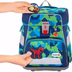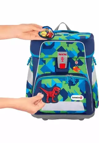 Die Limited Edition “Space Schleich” ist Teil einer Kooperation mit dem Spielzeughersteller Schleich. Der Space Schleich mir zauberhaften Schleich-Motiven begeistert durch besonders leichtes Material, großes Fassungsvermögen und das höhenverstellbare Tragesystem, das sich Ihrem wachsenden Kind anpassen kann. Die ergonomische Rückenpartie, das Rückenpolster, sowie Hüftflosse, Brustgurt und Lageverstellriemen sorgen für ein optimales Trageerlebnis. Für die individuelle Gestaltung können Magic Mags, ganz nach dem Geschmack Ihres Kindes, angebracht werden. Im geräumigen Hauptfach, das mit praktischem Fidlock-Magnetverschluss geschlossen wird, gibt es jede Menge Platz für alles, was im Unterricht gebraucht wird, zusätzlich können die zwei Seitentaschen nach außen wachsen und so im Inneren für genügend Stauraum sorgen. Das Mäppchen kann platzsparend im Schulranzen-Deckel verstaut werden. Set bestehend aus: Schulranzen, Federmäppchen (komplett bestückt mit Markenstiften), Schlamperetui, Sportbeutel und 3-teiligem Magic Mags Set. Schulranzen Außenmaß: 28 cm x 20 cm x 37 cm / Gewicht: ca. 1250 g / Volumen: ca. 20 l